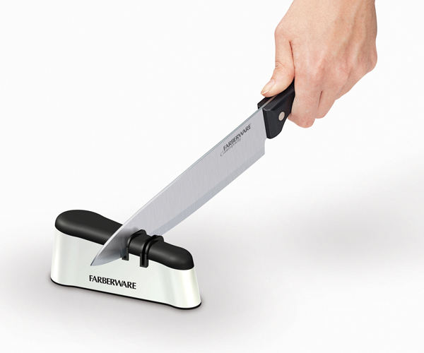 Ich muss ehrlich gestehen, ich war kurz davor, diese Messer alle zu ersetzen, als meine „Mitbewohnerin“ einmal mehr mich durch einen Ratschlag auf eine offensichtliche Überlegung brachte, auf die ich aber selber nicht gekommen wäre. Es könnte besser sein, ein Gadget zu kaufen (Hört sich schon mal ok an!), das die Messer schleifen kann, statt alle Messer zu ersetzen. Ich war sogar nicht mal sicher, ob die Idee wirklich gut war. Aber als ich herausfand, dass das Gadget rund CHF 5.00 kostet und ich noch nicht wusste, ab welcher Preisklasse gute taugliche Küchenmesser zu erwerben sind, entschied ich mich, auf den Rat meiner Lady zu hören.