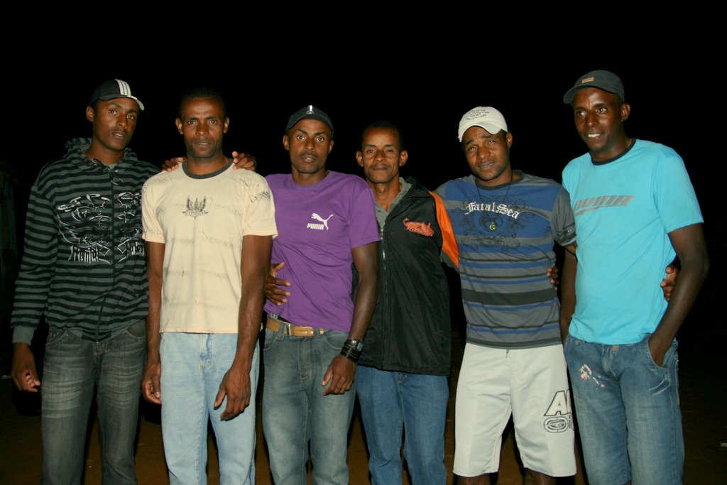 Das sind alle sechs Brüder von Regiane. Es ist 14 Jahre her, seit diese alle so zusammen waren. Der Älteste wohnt in Rio und war so lange nicht mehr bei seiner Familie. Er kam als Überraschung für die anderen mit uns mit, als wir Rio verliessen.